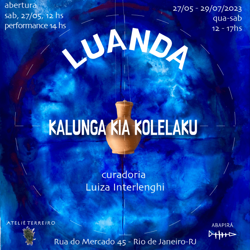 KALUNGA KIA KOLELAKU | ABAPIRÁ | exposição individual | 2023 em junho 15, 2023abril 7, 2024 By Luanda exposição individual da artista Luanda com curadoria de Luiza Interlenghi na Abapirá, Centro Histórico do Rio. Compartilhe isso: Compartilhar no Facebook(abre em nova janela) Facebook Compartilhar no WhatsApp(abre em nova janela) WhatsApp Compartilhar no X(abre em nova janela) 18+ Compartilhe no Linkedin(abre em nova janela) LinkedIn Compartilhar no Telegram(abre em nova janela) Telegram Share on Pinterest(abre em nova janela) Pinterest Email a link to a friend(abre em nova janela) E-mail Relacionado